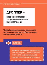 1. Что такое дропперство и «мнимый работодатель»? Как мошенники вовлекают подростков через соцсети и обещания быстрых денег.